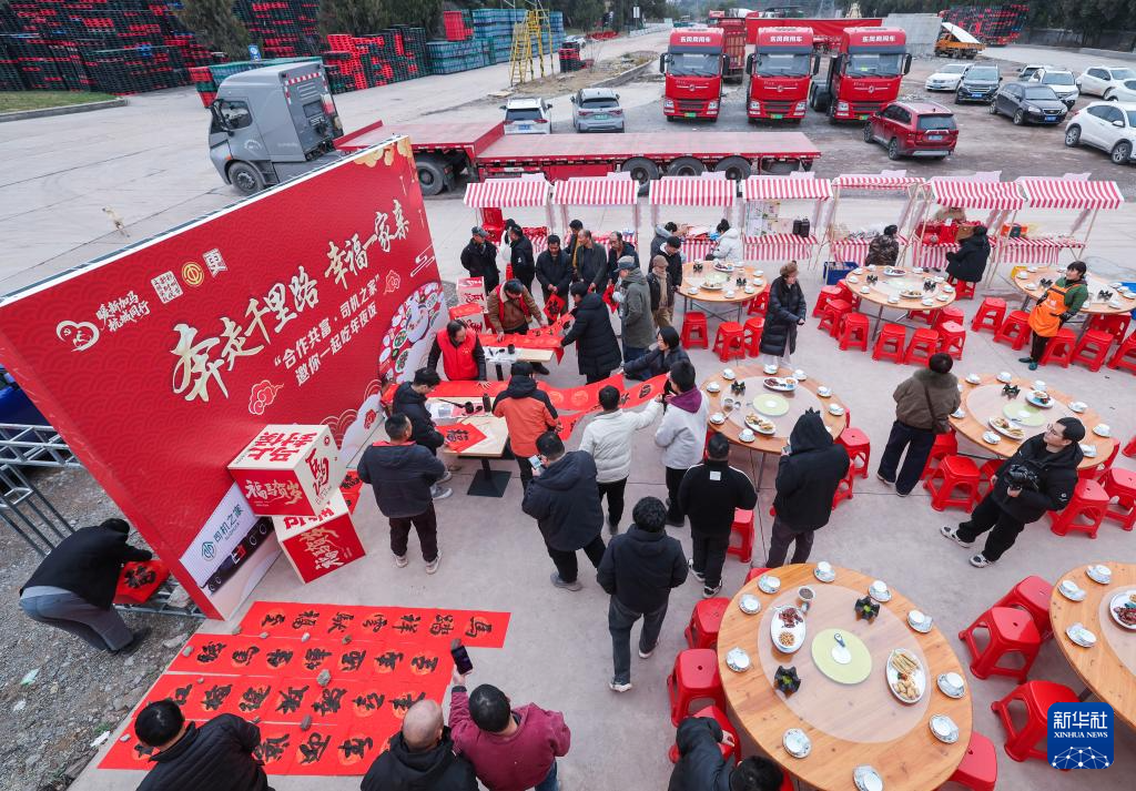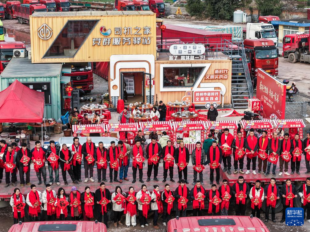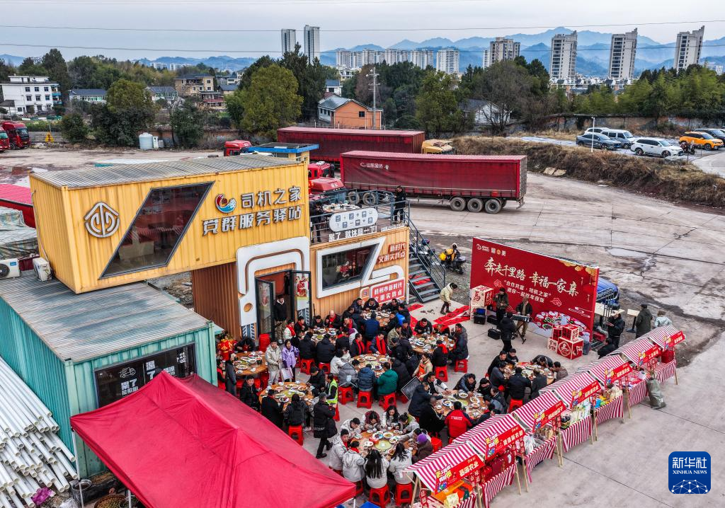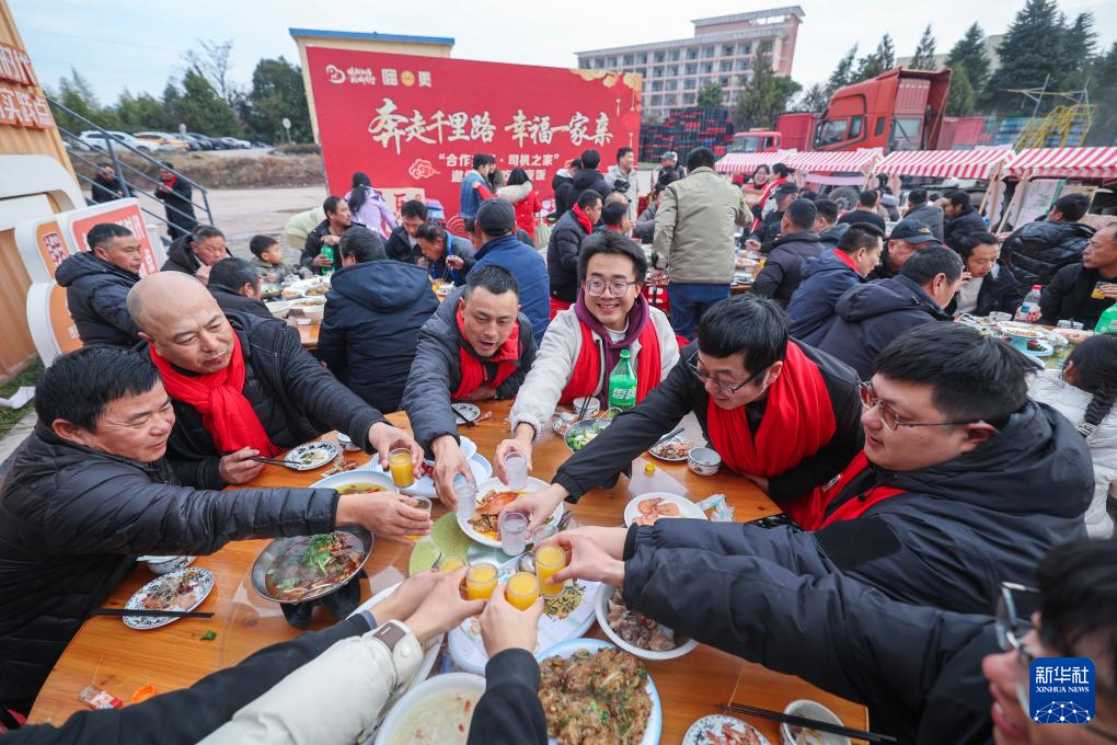 临近农历小年,浙江省建德市更楼街道的“合作共富·司机之家”举办“奔走千里路·幸福一家亲”团圆年夜饭活动,邀请货车司机和家属以及留在当地过年的其他外来务工人员参加,提前感受年味。
