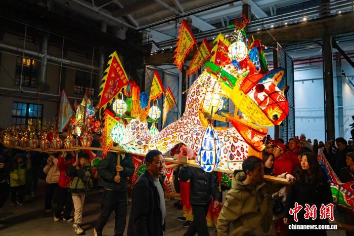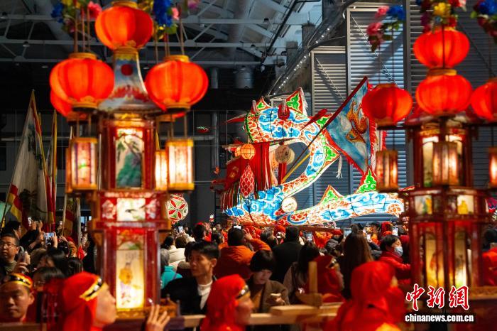 图为非遗展示环节中两条百米长的花灯“巨龙”前进。中新社记者吴君毅 摄
