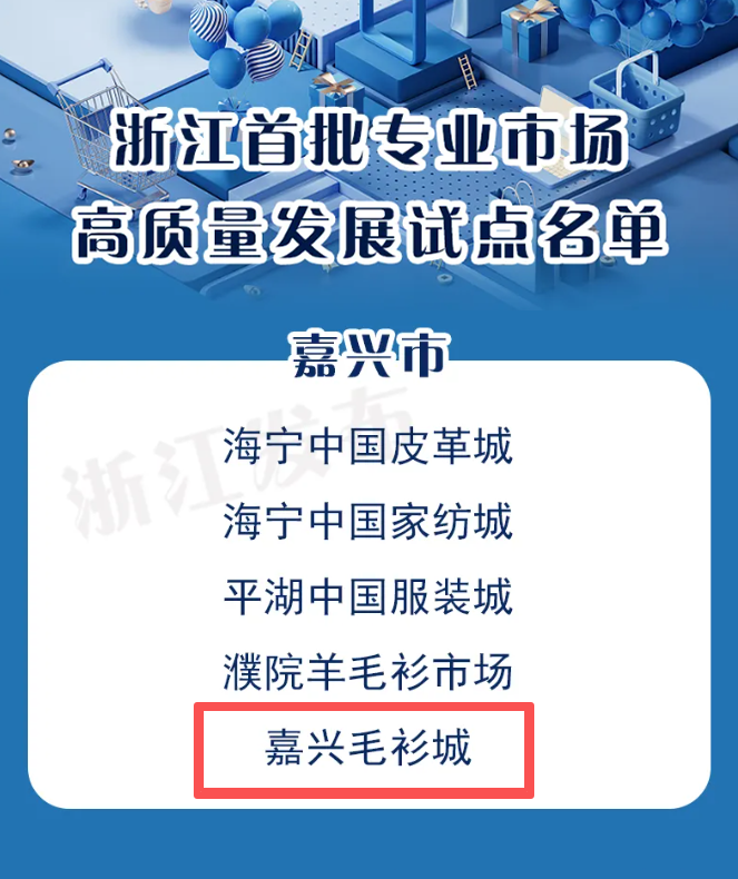 近日,浙江省商务厅、省市场监管局联合公布全省首批专业市场高质量发展试点名单,秀洲区洪合镇嘉兴毛衫城成功入选,成为全区唯一获此殊荣的专业市场。