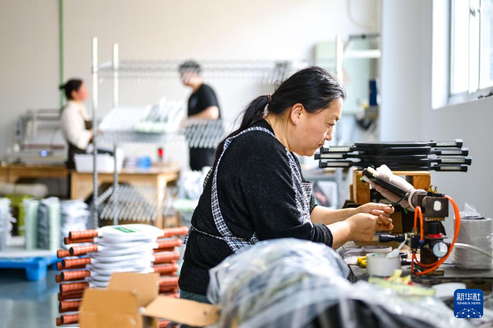 4月10日,员工在台州临海市一车间内制造匹克球拍。